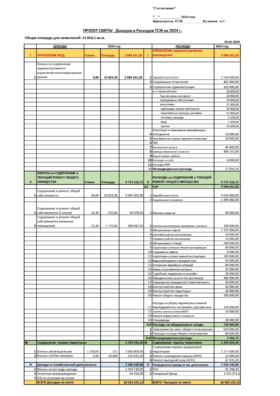 Смета Доходов и Расходов ТСЖ на 2023 г.